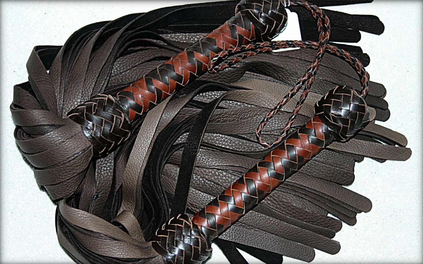 Below you can see beautiful, detailed examples of our deer floggers. Our most popular colors and color combinations. Tails in both lengths and widths. Our matched pairs. Add additional tails to the bundle for wonderful mops.